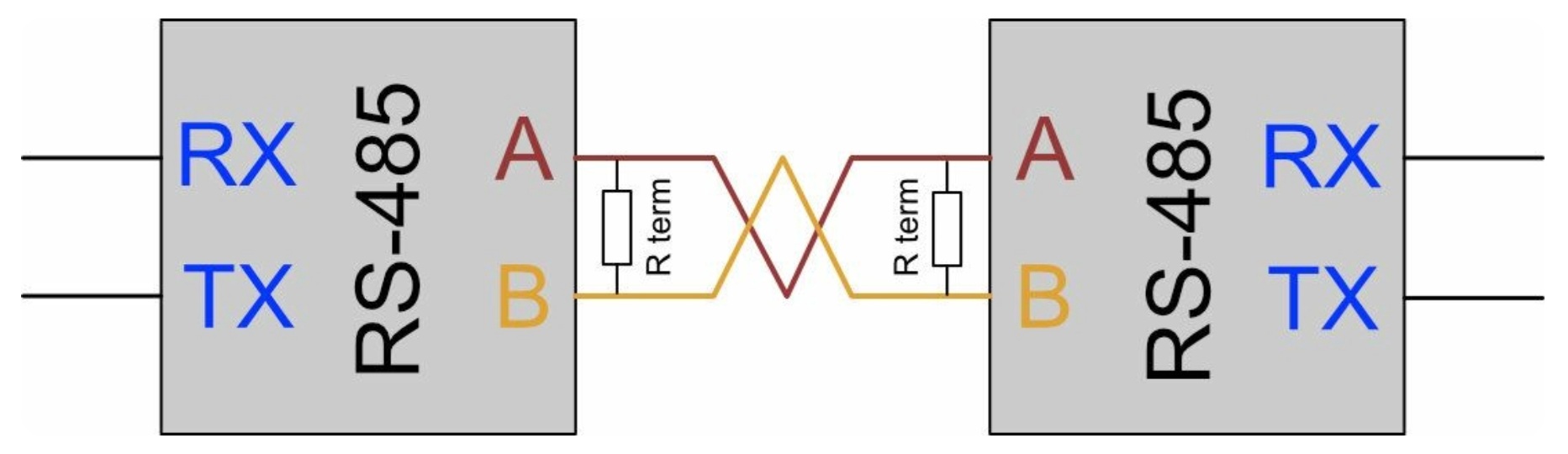 Расчёт: Для двух резисторов по 120 Ом параллельное сопротивление составляет 60 Ом. Именно на такую нагрузку рассчитаны драйверы RS-485.