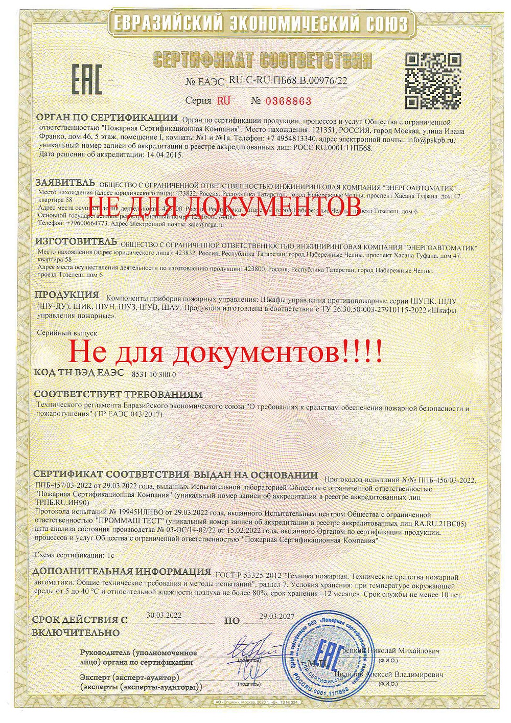 | Документация | Паспорт, схема подключения, пожарный сертификат |